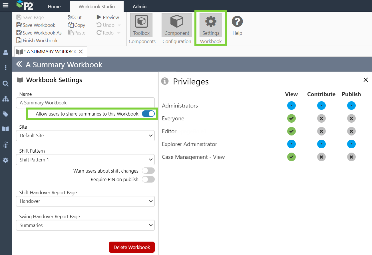 In Workbook Settings, a toggle option has been added to ‘Allow users to share summaries to this Workbook’. This must be turned on for summary workbooks.