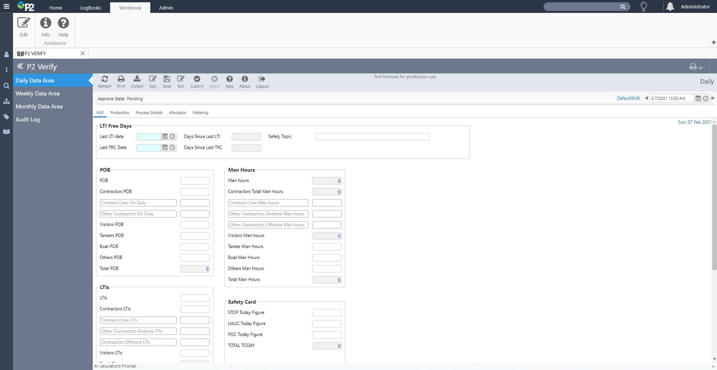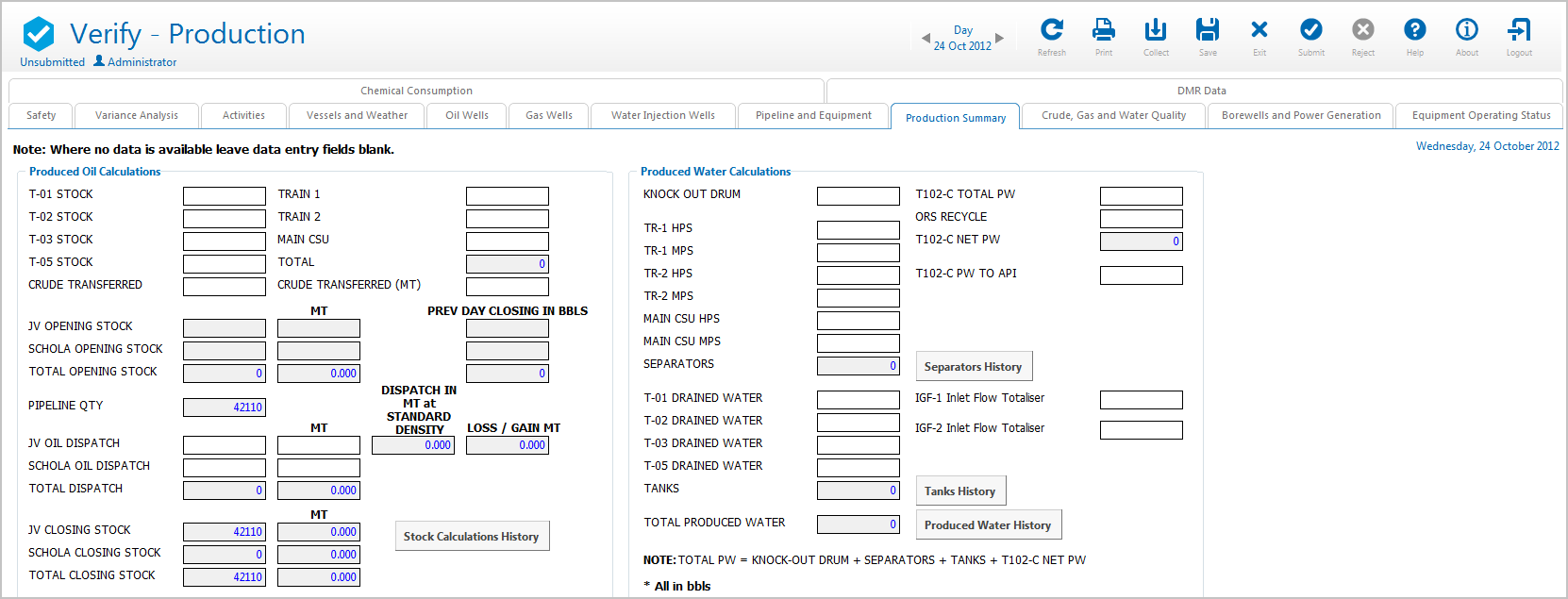 Verify, along with IFS OI Explorer, is a production accounting solution aimed at managing the production data and reporting. Operations reports are produced on a daily basis. Approved data is stored in a database and then displayed to operators via Explorer, or another production reporting application, such as IFS OI PDMS Reporting.